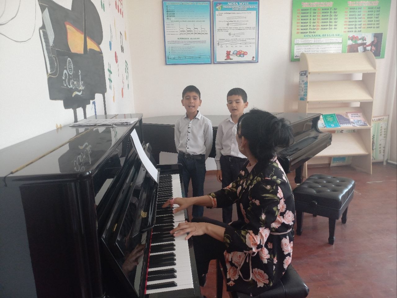 Estrada xonandalik yo'nalishidagi o'quvchilarning dars jarayonidan foto lavha.